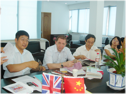 8月7日,在江苏天圣达集团会议室,天圣达集团副总经理许仲贤带领的中方代表与英国伦敦圣玛利大学麾下Nanoforce技术有限公司CEO—Paul Hogg教授率领的专家代表团就功能性新型纺织服装面料展开合作开发交流洽谈。洽谈会由天圣达集团董事会秘书、国际科技合作园副总经理俞豪主持。