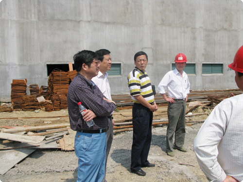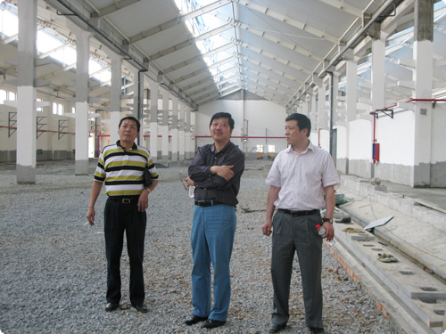 2009年5月28 日下午,中国传统端午佳节,江苏天圣达集团董事长吴惠明、副总经理许仲贤、董事会秘书蔡江华一行放弃节假日,在工程施工方等的陪同下,视察了集团公司新厂区——位于洛社石塘湾的太平洋工业园区建设工地、慰问现场施工工人。太平洋工业园区开工建设一年多以来,在集团领导的正确领导下,在多方的共同努力下,一幢幢漂亮的厂房在空旷的场地上拔地而起,主体工程已经接近尾声。