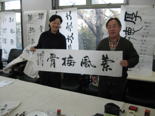 2010年12月18日,江苏天圣达集团会所——梅园小金谷翰墨飘香,来自北京文化艺术界的朋友中国民族器乐学会副会长,中国埙乐器博物馆馆长,北京市京昆振兴协会理事,北京市平谷区京剧爱好者协会会长贾宝明先生,首都师范大学美术学院副教授,北京美术家协会会员,北京书法家协会会员陈志良先生,北京书法家协会会员。宣武区书法家协会常务理事曹严华先生和无锡市政协委员,无锡政协联谊会书画社秘书长、民进无锡市委文化工作委员会副主任周安生先生等应邀做客惠庐画院,开展文化交流笔会。江苏天圣达集团董事长吴慧明先生亲临笔会现场。
